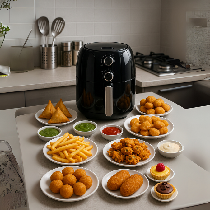 ✅ Make samosas, fries, cutlets, kebabs, pakoras & desserts in a healthier way ✅ Perfect for cloud kitchens, cafés, snack joints & health-conscious menus ✅ Save on oil costs while serving crispy, tasty favorites ✅ Step-by-step recipes using Indian & global flavors ✅ Veg and non-veg recipes included – easy for bulk prep ✅ Attract health-focused customers with a modern twist on classic snacks